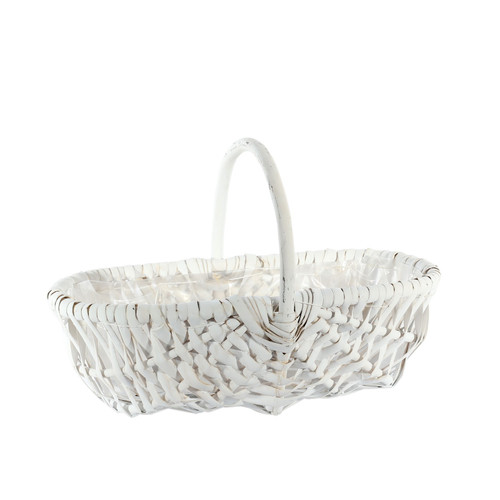 White Oval Split Willow Basket with Handle and Liner (31cm)