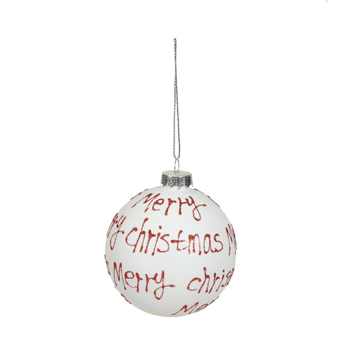 Bauble Red Merry Christmas White Glass (Dia8cm)